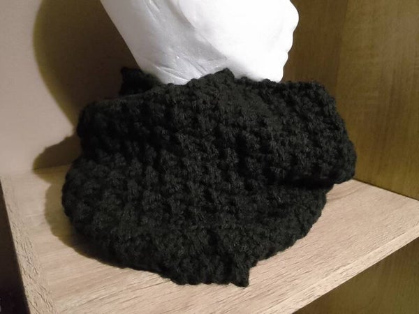 Snood 100% acrylique, tricoté avec différents points (point de riz, côte perlée, jersey...).